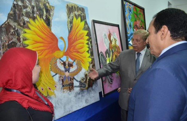 كما تضمنت الاحتفالية افتتاح المحافظ ورئيس الجامعة ومرافقيهم من القيادات لمعرض الأنشطة الطلابية للجامعة والذى ضم مجموعة كبيرة من الأعمال الفنية واللوحات وأعمال النحت والجرافيك الى جانب المشغولات اليدوية ومشاريع التخرج للطلاب ...
