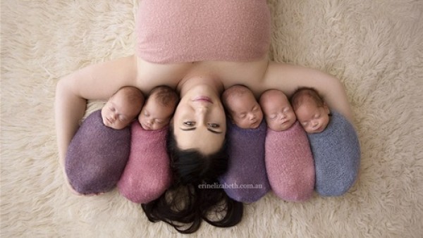 وضعت الأم صبى "كيث" وأربعة فتيات "آلى، بياتريكس، تيفانى، بينلوب"، والتقطت الصور الجديدة من قبل "إيرين إليزابيث".