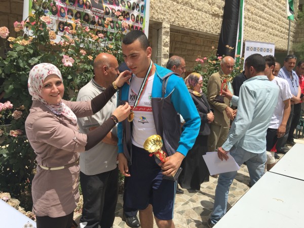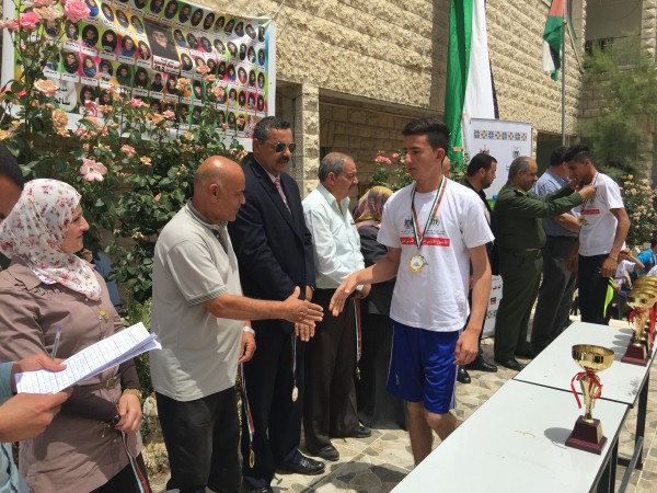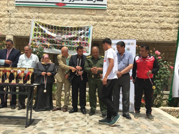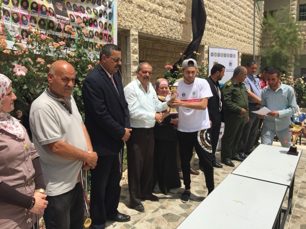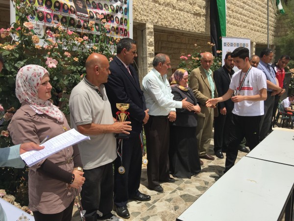 وفي ختام المسابقات قام كل من فرهود وعصايرة ونخلة ومدير التربية عريقات ومدير المدرسة المستضيفة سالم خاطر وممثلين المؤسسات بتسليم الجوائز على مستحقيها في فرحة الفوز وقد كرمت وزارة التربية والتعليم العالي مدير المدرسة سالم خاطر لتحضيراته واستضافة المنافسة .
