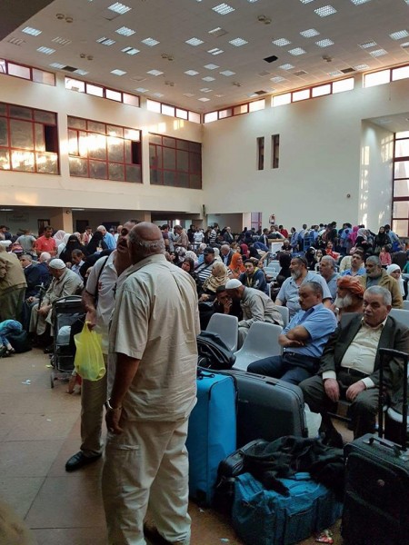 بالصور..معاناة المسافرين داخل الصالة المصرية من معبر رفح البري