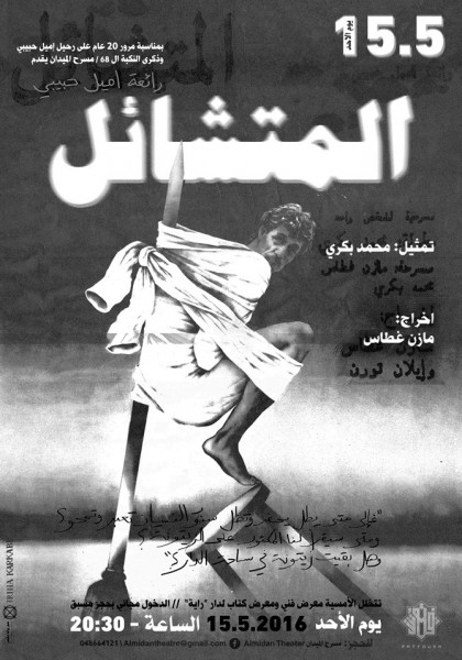 ندعوكم كذلك للمشاركة في الامسية الفنية والنقدية حول "المتشائل"، والتي تحييها دار نشر ومقهى "راية"، بالتعاون مع الميدان يوم الخميس 12.5.2016 الساعة السابعة والنصف مساءاً بمشاركة الممثل محمد بكري والناقد انطون شلحت.