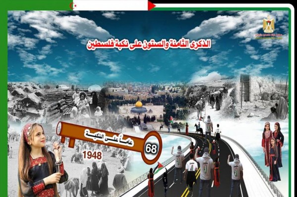 أعلنت سفارة فلسطين في الجزائر, عن نيتها إحياء ذكرى النكبة الأحد المقبل, وتنظيم عدة فعاليات بهذا الخصوص.*