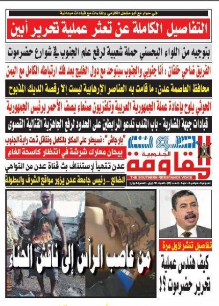 حيث دأبت الصحيفة على متابعة اخبار الجبهات والنزول الميداني لنقل صورة عن سير المعارك طيلة ايام الحرب الحوثية العفاشية على الجنوب .