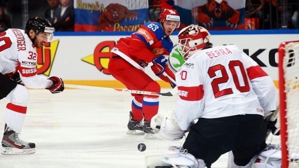 هزم المنتخب الروسي نظيره السويسري 5-1 في المباراة التي جمعتهما السبت 14 مايو / أيار ضمن الجولة الخامسة من المجموعة الأولى لبطولة كأس العالم للهوكي التي تستضيفها روسيا.