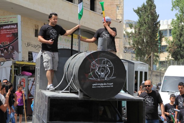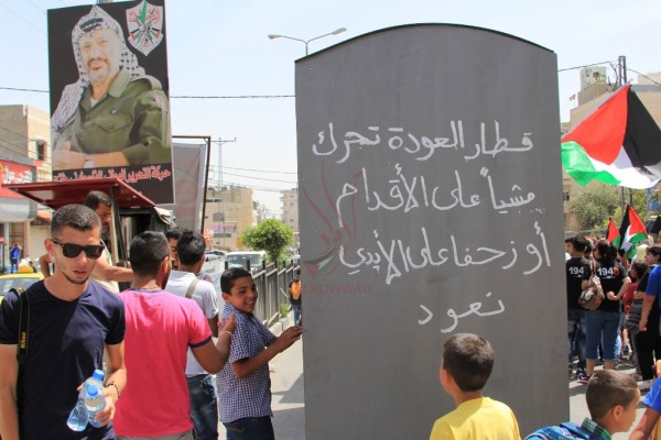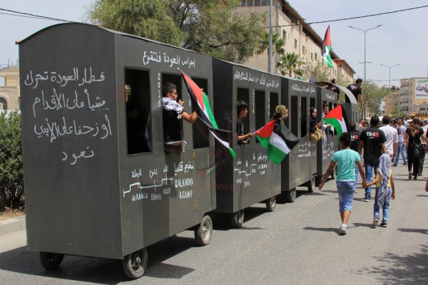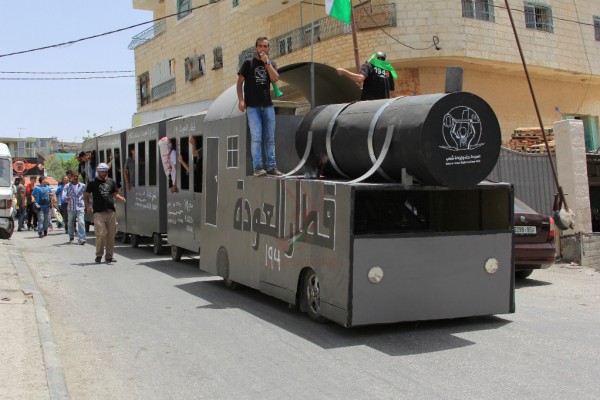 اللاجئون الفلسطينيون يجسدون عودتهم لقراهم في قطار العودة