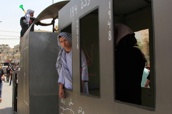 القطار الذي اشرف على تجهيزه كل من اللجنة التنسيقية للمقاومة الشعبية والشبكة العالمية للاجئين والمهجرين تقدم مسيرة لاحياء ذكرى النكبة الـ68 التي تصادف اليوم وذلك بمشاركة القوى الوطنية ومؤسسات المجتمع المحلي .