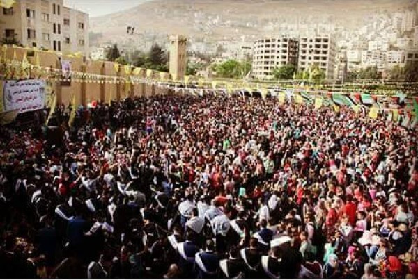 نابلس أ.د يوسف ذياب وقدم الشكر الجزيل الى رئيس مجلس اتحاد الطلبه عصام رياحي لدوره في تنظيم هذا العرس الجماهيري جنبا الى جنب مع حركة الشبيبة الطلابية الذي يؤكد اننا شعب حي رغم القتل والتشريد والاستيطان التي تمارسها قوات الاحتلال الصهيوني بحق ابناء شعبنا في كل اماكن تواجده .