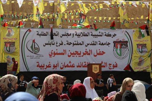 أقامت حركة الشبيبة الطلابية ومجلس اتحاد الطلبة في جامعة القدس المفتوحة بنابلس ، حفل تخريج للطلبة الخريجين من الجامعة في ساحة محافظة نابلس، بحضور عضو اللجنة المركزية لحركة فتح عباس زكي، وأمين سر حركة فتح جهاد رمضان، واعضاء الاقليم، واعضاء المجلس التشريعي عن الحركة جمال طيراوي ونجاة ابو بكر، ونائب مفوض التعبئة والتنظيم دلال سلامة و ممثلي المؤسسات الأهلية وقيادات المجتمع المحلي .