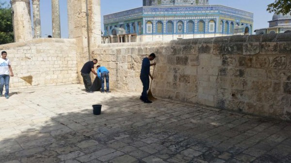 وقد لوحظ حالت استنفار شرطي في شوارع البلدة القديمة حيث تواجد مئات المتطوعين في عشرات ورش العمل داخل المسجد وفي محيطة واحياء مدينة القدس. شرع المتطوعون فور وصولهم للمسجد الأقصى بعشرات المشروعات والورش من أعمال صيانة ونظافة وترتيب في قبة الصخرة والمسجد القبلي والأقصى القديم والمصلى المرواني ومكتبات ومراحيض المسجد الأقصى، كما اشتمل العمل على المنطقة الشرقية للمسجد الأقصى وباقي المرافق لاستقبال المصلين في الشهر الفضيل.
