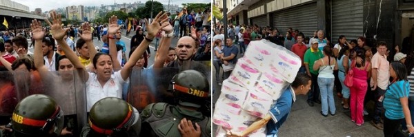 وقال Ramón Muchacho إنه رأى أشخاصا يقتلعون الحشائش ليسدون بها جوعهم، وإن أزمة النقص في الغذاء والملبس والدواء، حتى بورق التواليت للمراحيض، ونسبتها أصبحت 70% من حجم المطلوب تقريبا، تزداد سوءا كل يوم، وسط تضخم وصلت نسبته إلى 181% وهو إلى ما مزيد، ويؤثر سلبا على الظروف المعيشية للمعانين في الوقت نفسه من انقطاع الكهرباء يوميا وتقليص العمل بالقطاع العام إلى يومين فقط بالأسبوع، لذلك دعا تحالف "طاولة الديمقراطية" المعارض، وهو الأغلبية في البرلمان، إلى التظاهر والمطالبة باستفتاء "لإسقاط النظام التشافيسي الحاكم" وفق بيان أصدره ردا على قرار اتخذته الحكومة يوم الجمعة الماضي.
