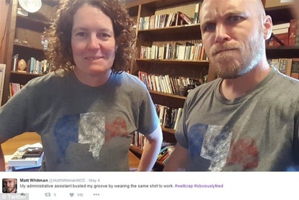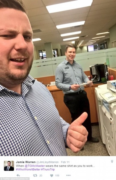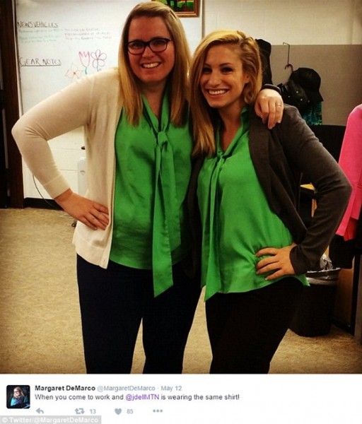 بالصور.. زملاء عمل تجمعهم الصدفة بنفس الملابس يشعلون تويتر
