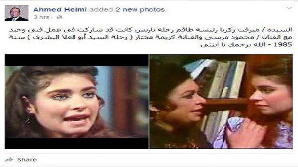 ونشر أحد المضيفين من زملائها صورة لميرفت زكريا وكتب: " العمل الفني اسمه رحلة السيد أبو العلا البشري سنة 1985 - الله يرحمك يا ابنتي".