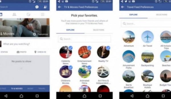 وظهر لبعض مستخدمي موقع التواصل الاجتماعي عبر الهواتف الذكية عدة تصنيفات يمكن الاختيار من بينها، مثل الأفلام والتلفاز، والموسيقى، والسفر، وغير ذلك.