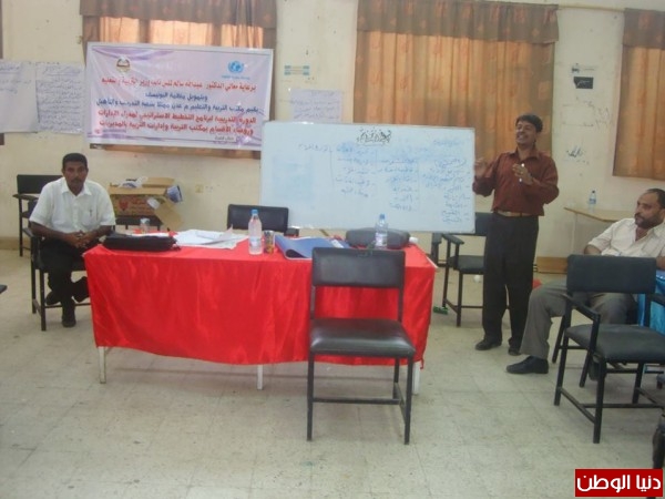 دشن مكتب التربية والتعليم في محافظة عدن اليوم دورة البرنامج التدريبي لتنمية مهارات التخطيط والتنظيم الاستراتيجي، والتي أقامها المكتب بتنفيذ من شعبة التدريب والتاهيل وبرعاية نائب وزير التربية والتعليم د عبدالله لملس وبتمويل من منظمة اليونسيف.