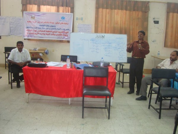 عبدالله لملس وبتمويل من منظمة اليونسيف. وتهدف هذه الدورة الى تدريب عدد من مديري الإدارات ورؤساء الأقسام في مكتب التربية والتعليم بالمحافظة على مهارات التخطيط والتنظيم الاستراتيجي والذي يعد ركنا أساسيا من أركان العملية الإدارية الناجحة .