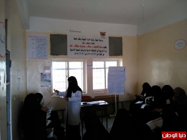 تتواصل بمديرية حيفان بمحافظة تعز فعاليات الدورة التدريبية الخاصة بالمتطوعات في مجال الاسعافات الأوليه والرسائل الصحية الأساسيه التى تقيمها جمعية رعاية الاسرة اليمنية على مدى أسبوعين في الفترة 14 – 26 مايو الجاري بمشاركة 16 متطوعة من عزلة الاعروق .