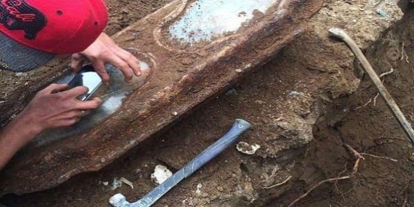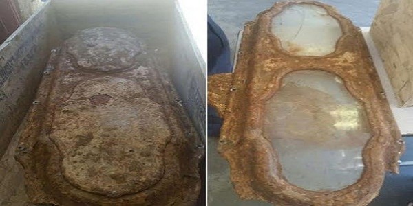 وقد وجدوا التابوت بلونيه الرصاصي والبرونزي، أسفل مرأب خرساني، حيث يعتقدون أن بداخله جثمان لطفلة، لا تتعدى الثلاث سنوات من عمرها، ويظهر جلدها وشعرها الأشقر من وراء زجاج التابوت، محفوظًا رغم مرور ما يزيد عن 100 عام.