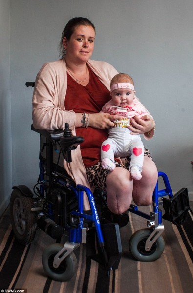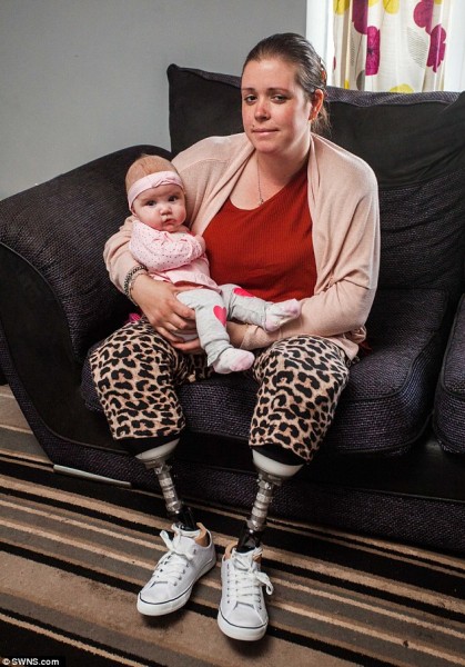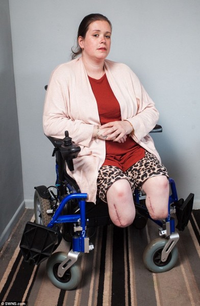 وكانت قد أصيبت بجلطة في قدميها أثناء الولادة، فأخبرها حينها الطبيب بضرورة بترهما فوافقت على ذلك.