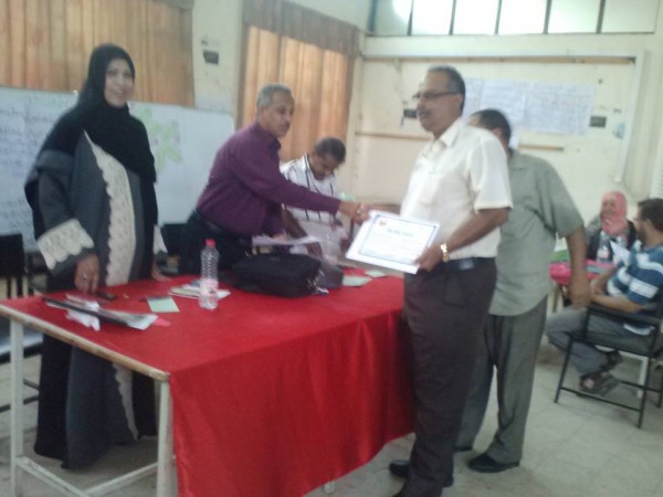وفي ختام الدورة قام مدير مكتب التربية والتعليم الاخ محمد الرقيبي ورئيسة شعبة التدريب والتأهيل ومديرادارة التدريب والتأهيل بتقديم شهادات المشاركة التقديرية للمستهدفين والمدربين الوطنيين .