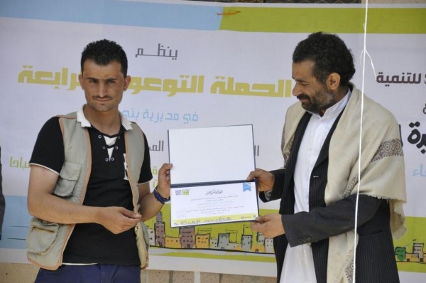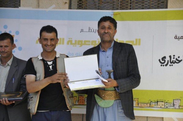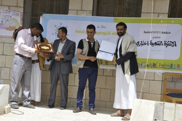 وفي نهاية الحفل تم تكريم كافة المتعاونين والفاعلين في إنجاح أنشطة المشروع بشهادات وهدايا تذكارية نظيراً لعطائهم الكبير ومساهمتهم الفاعلة في انجاح كافة انشطة وفعاليات المشروع. حضر الحفل أهالي وأعيان المنطقة ومدير عام المديرية وممثل المجلس المحلي ومدير مكتب التربية ومكتب الصحة وغيرهم.