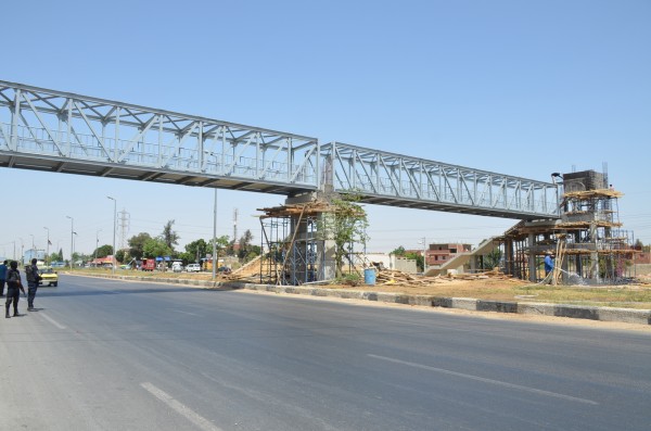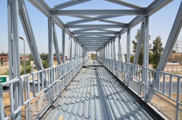 محافظ الاسماعيلية يتفقد المراحل النهائية لمشروع انشاء كوبرى المشاه الجديد على طريق القاهرة الصحراوى