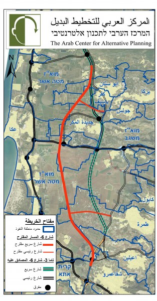 المركز العربي للتخطيط البديل يدعو البلدات العربية في الجليل الغربي للتعاون لاخراج شارع رقم 6 خارج حدود أراضيها