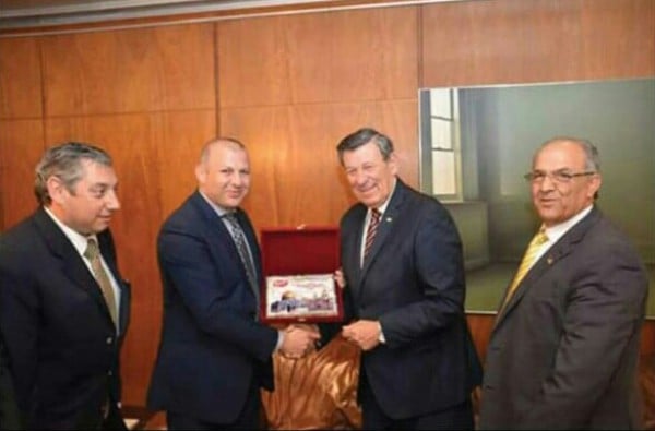 استقبل وزير خارجية الاورغواي رودولفونين نوفو ، رجل الأعمال الفلسطيني رائد سلامة مدير عام مجموعة حمودة الاستثمارية ومجد مدني احد مسؤولي الشركة خلال زيارة العمل التي قام بها حمودة للاطلاع على فرص الاستثمار في الأوروغواي .