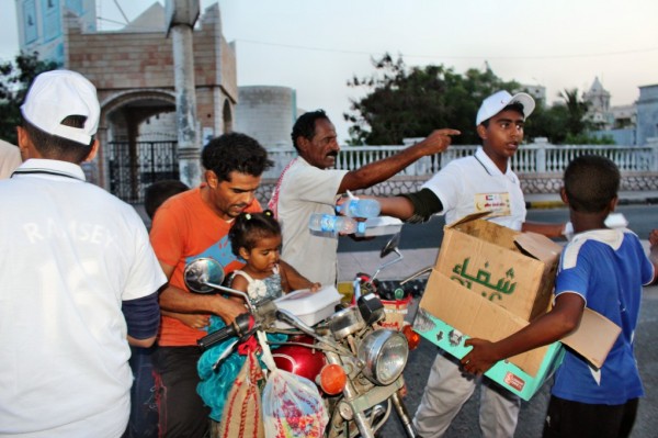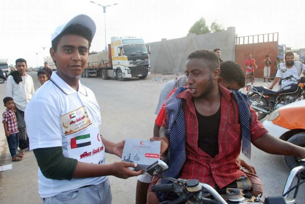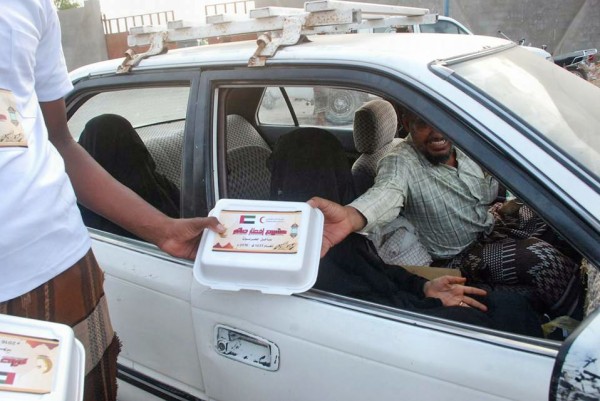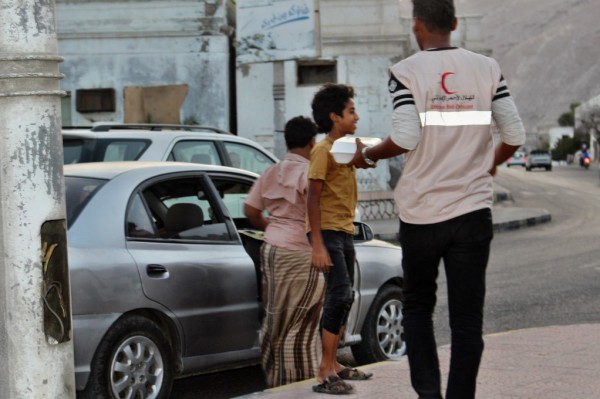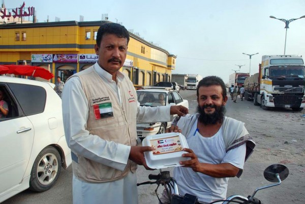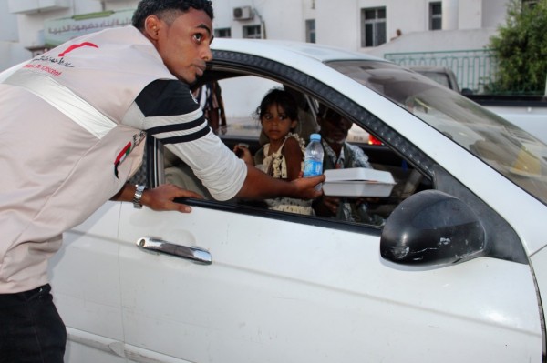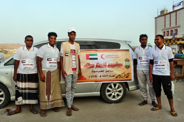 دشنت هيئة الهلال الأحمر الإماراتي عصراليوم بمدينة المكلا عاصمة محافظة حضرموت مشروع إفطار الصائم بحضور المشرفين الميدانينعلى مشاريعه الأستاذ زائد التميمي والأستاذ شوقي التميمي وشباب فرق الملتقيات التطوعيةالشبابية المشاركة في توزيع الإفطارات.