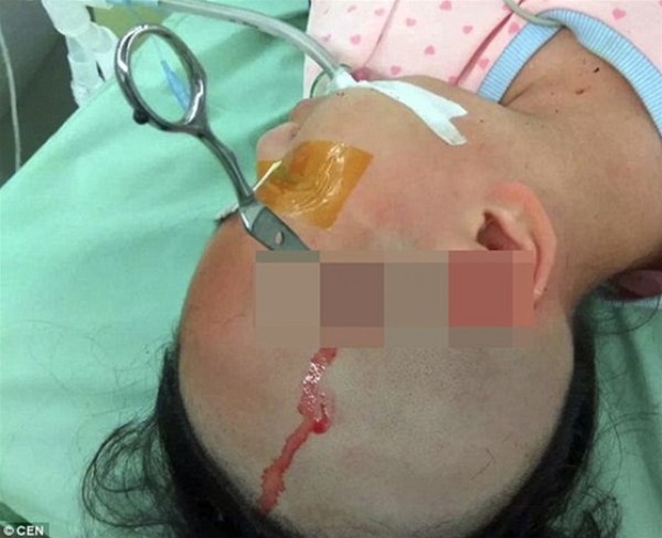 وفقا لما نشرته صحيفة "ديلى ميل" البريطانية، وقع الحادث بمدينة شنجهاى عندما ألقى الأب المقص نحو إبنته ليستقر بجمجمتها عن طريق الخطأ، أثناء محاولته تخويفها بينما تلعب أثناء أداء واجباتها، لكن الطفلة لا تتذكر ما حدث.