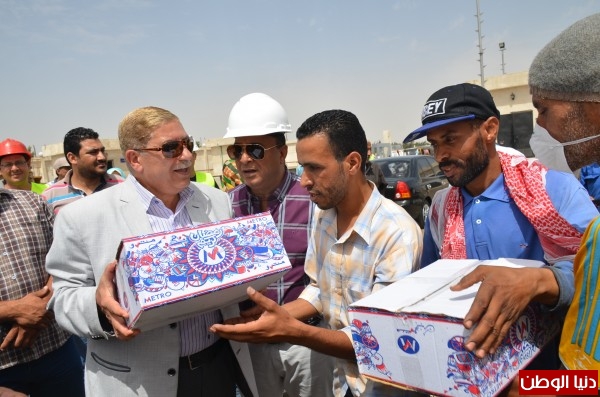 وفى ختام الزيارة قام المحافظ وتائب المستشار العسكرى للمحافظة بتوزيع شنط رمضان وهدايا الشهر الكريم على العاملين بالمصنع .