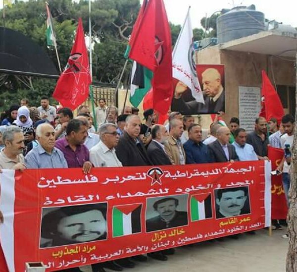 بمناسبة الذكرى السنوية لاستشهاد ثلاثة من اعضاء لجنتها المركزية الرفاق: (عمر القاسم، خالد نزال وبهيج المجذوب) ، نظمت الجبهة الديمقراطية لتحرير فلسطين مسيرة جماهيرية دعما للاسرى في سجون الاحتلال وتضامنا مع الانتفاضة انطلقت من مخيم شاتيلا باتجاه مقبرة الشهداء.