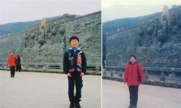 وقال الزوج "تشانج" إن الصورة تم التقاطها خلال زيارته لتمثال بوذا العملاق الموجود في جبل "لينج" مع عائلته في عام 2000، وعندما رأت "لو" التمثال في الخلفية جعلها تتذكر صورة لوالدتها تم التقاطها قبل 16 عاما في نفس المكان وبنفس معطفها الأحمر المميز، حيث لم تصدق "لو" عينيها وأخذت تصرخ في المكان واعتقد زوجها أنها تبالغ في رد فعلها لكنها أكدت له أنها والدتها.