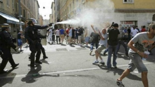 تورط مشجعون بريطانيون في اشتباكات جديدة مع الشرطة الفرنسية ومشجعين منافسين في مرسيليا في اليوم الذي لعب فيه منتخبهم أولى مبارياته في بطولة أمم أوروبا 2016.