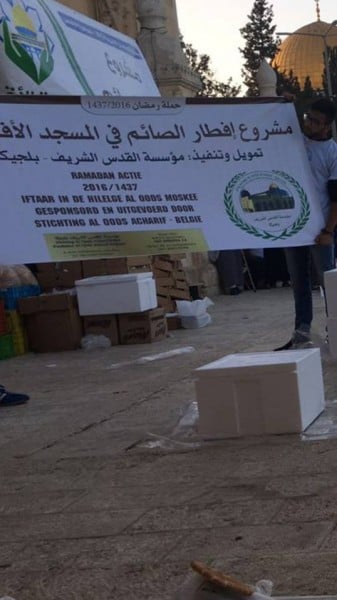شرعت مؤسسة القدس الشريف بلجيكا بتنفيذ مشروع إفطار الصائمين في ساحات المسجد الأقصى المبارك , حيث تم توزيع وجبات ساخنة على المصلين في المسجد وقد وضعت على شكل موائد في باحات المسجد الأقصى المبارك.