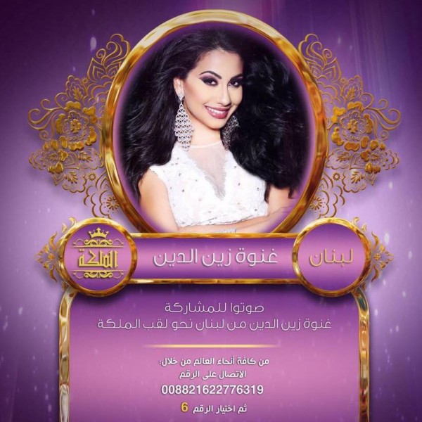 غنوة زين الدين ملكة جمال العرب بأمريكا لعام 2014 ، أعلنت مؤخراً مشاركتها بالبرنامج التليفزيوني"الملكة" الذي يهدف لأنتخاب ملكة المسؤولية الاجتماعية وذلك بطرح مشروع لرعاية الهوية العربية لأطفال العرب بالمهجر.