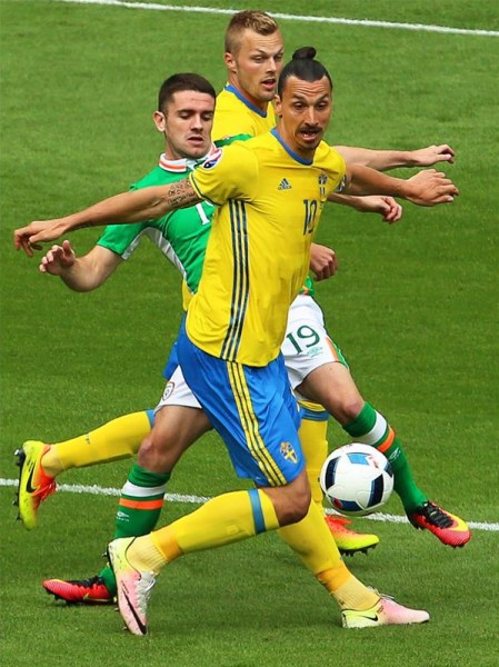 وظهر القائد السويدي زلاتان إبراهيموفيتش، للمرة الأولى في الدقيقة 38، بعدما تلقى الكرة على بعد ست ياردات من المرمى الأيرلندي لكنه تعثر في التسديد.