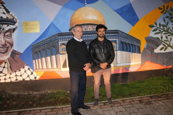 كما تقدم السيد بيتو وربونسون أحد الفنانين الذين شاركوا في جدارية الحرية بالشكر لسفارة فلسطين على إستقبالهم ومساندتهم لهذه المجموعة في عدة مُناسبات وكذلك منحهم فرصه لرسم جدارية الحرية لفلسطين على جدار السفارة متعهداً بأن