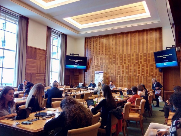 وترأس الجلسة الباحث في المركز بيترو ستيفانيني والذي تحدث عن الإشكاليات القانونية التي يعاني منها اللاجئون الفلسطينيون من سورية كعديمي جنسية وانعكاس ذلك على أوضاعهم ونوع المعاملة التي يتلقونها داخل وخارج سورية، إضافة إلى الآثار المترتبة على استبعادهم من ولاية المفوضية العليا للاجئين واقتصارهم على برامج الأنروا التي لا تقدم الحماية أو أية حلول سياسية.