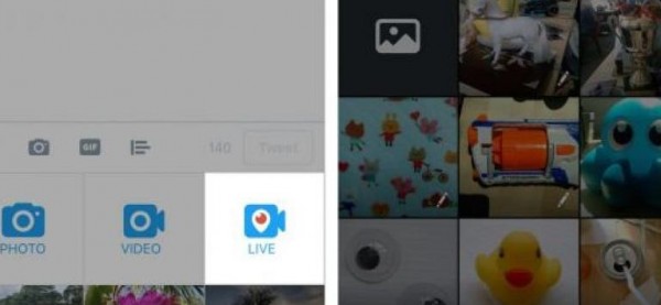 ونشرت تويتر مع تغريدها صورتين توضحان طريقة بث الفيديو عبر بريسكوب، إذ يظهر الزر عند النقر على زر إرفاق الوسائط المتعددة.