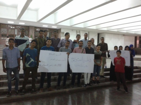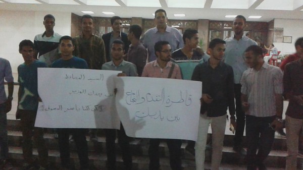 وحمل الشباب المشارك فى الوقفة لافتات كتبعليها " قاطرة التقدم والنجاح بين يديك " و" كلنا ياسر الدسوقى" و" انت لوحدك الوزير يا محافظ اسيوط " .