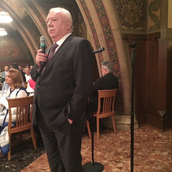 وأعرب في كلمته للحاضرين عن قلقه تجاه السلام في العالم أجمع وخصوصا في الدول الاسلامية وأشار الى زيارته لطهران والانتقادات الي وجهت له مبررا ذلك بأنه لابديل عن الحوار فكلنا هنا سواء لا وجود للتبعية القومية أوالمذهبية كلنا نحن في فيينا فيناويين