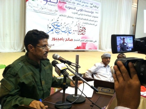 برعاية محافظ عدن اللواء عيدوس الزبيدي وقائد شرطة عدن اللواء شلال علي شايع وعلى نفقة رجل الخير الشيخ صالح بامبجور ودعم من مجموعة ٣٣ الجنوبية، نظمت مؤسسة طوبى التنموية مساء " الجمعة " بفندق " كورال " بخور مكسر الاحتفالية الثالثة لتكريم جرحى الحرب من أصحاب الإعاقة الدائمة من جرحى كتيبة سلمان الحزم ومديريات المعلا والتواهي وصيرة بالعاصمة عدن .