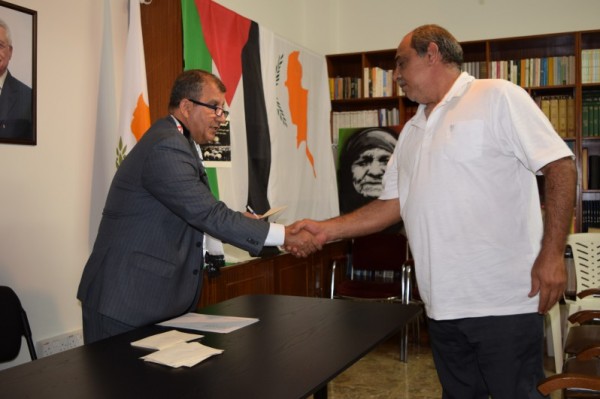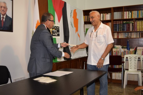 قام اليوم سفير دولة فلسطين د. وليد حسن بتوزيع منحة الرئيس محمود عباس على اللاجئين الفلسطينيين بمناسبة قرب حلول عيد الفطر المبارك ، في مقر سفارة دولة فلسطين في العاصمة القبرصية نيقوسيا.