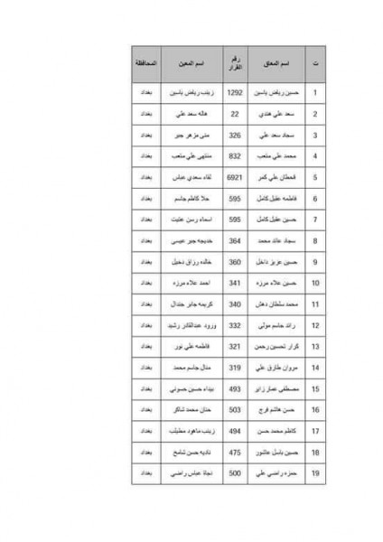 هيئة الاعاقة والاحتياجات الخاصة في وزارة العمل تطلق رواتب ل ٥٠٠ مستفيد للمعين المتفرغ في بغداد وواسط وبابل وديالى وصلاح الدين ضمن الدفعة الثانية خلال الايام المقبلة وحسب الأسماء المنشورة على الموقع الالكتروني للوزارة