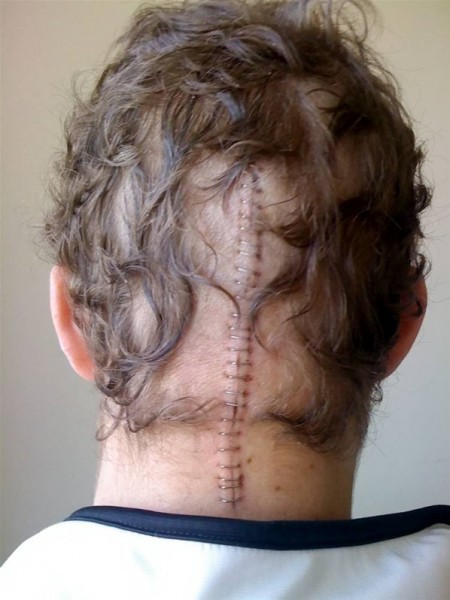 وكان هاتشيسون خضع لعملية استمرت أربع ساعات لإزالة الأورام تاركة ندبة تشبه "السحّاب" على الجزء الخلفي من رأسه، حيث هذه المرة الثانية التي يخضع فيها الشاب لعملية جراحية في المخ منذ عام 2011، وفي المرتين كان تشخيص الأطباء خاطئًا.