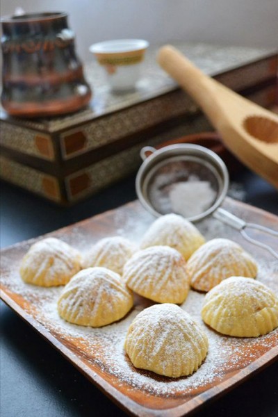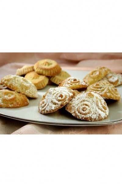 - إذا كنت ترغبين في وضع أكثر من نوع من حلويات العيد، رصي كل كعكتين بجانب بعضهما بحيث تكون واحدة منهم مائلة على الأخرى، وكذلك في البيتيفور والغريبة في صينية مزخرفة.
