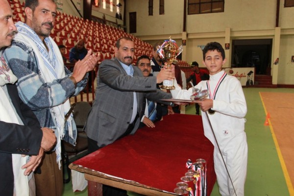 عقب ذلك قام عبدالله عبيد مدير مكتب الشباب بالأمانة وأبو علي الخولاني المنسق التربوي لأنصار الله بوزارة الشباب ومحسن لطف نائب رئيس الاتحاد وامين عام الاتحاد سمير بادي ورئيس الفرع الياس الشقاقي بتكريم الحاصلين على المراكز الأولى في جميع الفئات بالكؤوس والميداليات على النحو التالي :