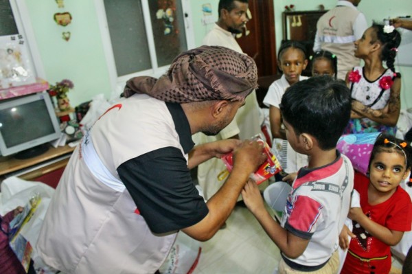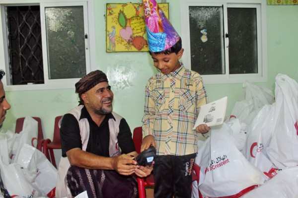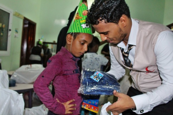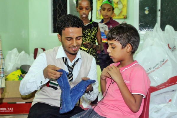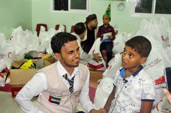 الهلال الأحمر الإماراتي يوزع كسوة العيد على الأطفال من ذوي الاحتياجات الخاصة بالمكلا