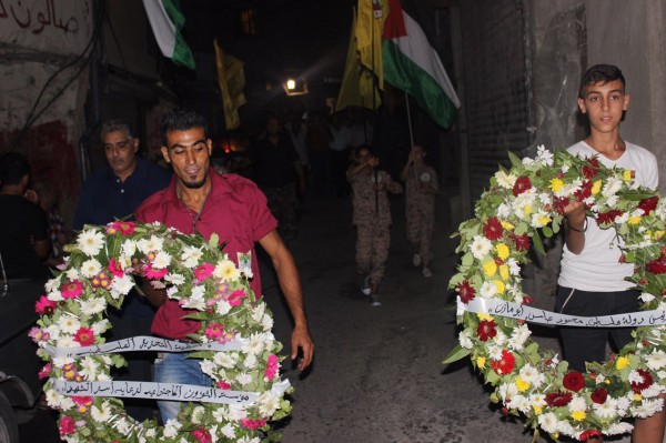بمناسبة قدوم عيد الفطر السعيد احيت حركة التحرير الوطني الفلسطيني – فتح شعبة الميه وميه المناسبة بوضع اكاليل من الورود على نصب شهداء المخيم وذلك مساء يوم الثلاثاء الموافق 5/7/2016.