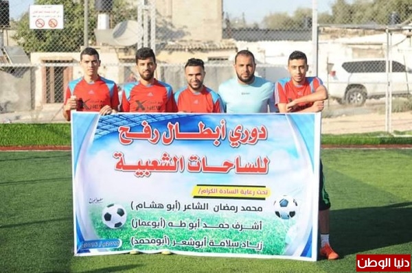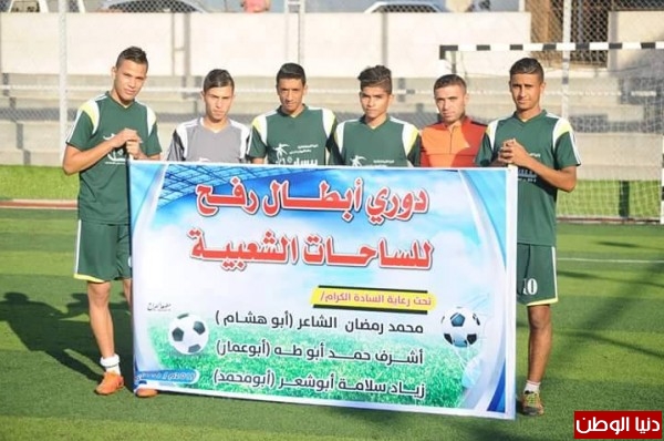 إفتتحت عصر اليوم الاحد مباريات بطولة كأس الابطال للمتوجين بألقاب البطولات الرمضانية فى محافظة رفح برعاية كريمة من رجال الأعمال الاستاذ محمد الشاعر "ابو هشام" والاستاذ زياد ابو شعر والاستاذ اشرف ابو طه "ابوعمار" وذلك علي ملعب السلام الرياضي المعشب فى حي السلام.